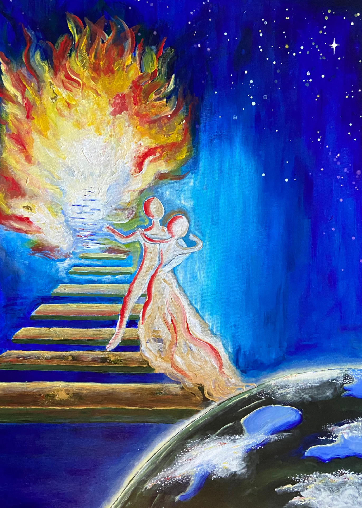 The bride and the Bridegroom. He is softly leading her into total surrender, dancing..